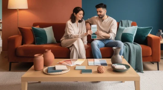 La palette chromatique définit l’ambiance d’un espace. La règle des 60-30-10 offre un cadre rassurant pour les débutants : 60% de couleur dominante (généralement neutre, pour les murs et grandes surfaces), 30% de couleur secondaire (mobilier principal), et 10% de couleur d’accent (accessoires, coussins, œuvres d’art). Cette proportion crée un équilibre visuel naturel. Les tons chauds (rouge, orange, jaune) dynamisent et réchauffent, tandis que les tons froids (bleu, vert, violet) apaisent et agrandissent visuellement l’espace.